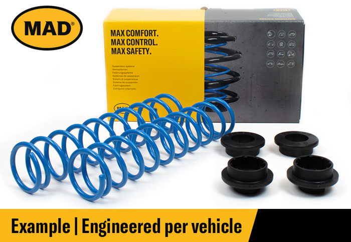 We at Ekollon Limited are the official UK distributor for MAD Suspension Products. Our helper springs are the solution for heavy loads for cars, trailing caravans, camper vans, motorhomes, vans and vehicles with bike racks. Caravans and motorhomes are a great way to on holiday with but if your vehicle is loaded up especially with a bike rack on the back or your car is trailing your caravan behind then it could put real pressure on your rear suspension. This in turn can reduce grip from the front tyres and make the vehicle itself become unstable. So if your vehicle is carrying a heavy load and is at risk of ruining its suspension, then our powerful helper springs from MAD should be your first choice!
